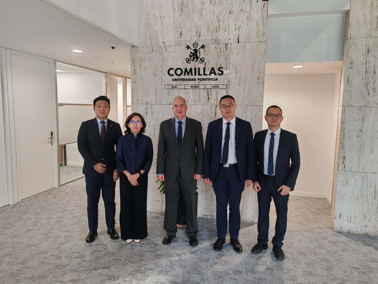 在西班牙卡米亚斯宗座大学出访期间,代表团会见了该校研究生培养中心主任Antonio Jesús Alonso Timón教授。泮伟江院长向Antonio Jesús Alonso Timón教授介绍了北航法学院的发展历程、学科和人才培养特色、科研与社会服务成绩等,并提出双方深化合作交流的计划。Antonio Jesús Alonso Timón教授对此高度认可,并就西班牙米亚斯宗座大学在学科建设、研究生培养和社会贡献方面的发展情况作出了详细介绍。双方就加强师生互访、国际法治人才和研究生培养,以及深化数字法治、人工智能治理等前沿领域合作展开了深入的探讨,并就推进两院合作备忘录签订达成合意。