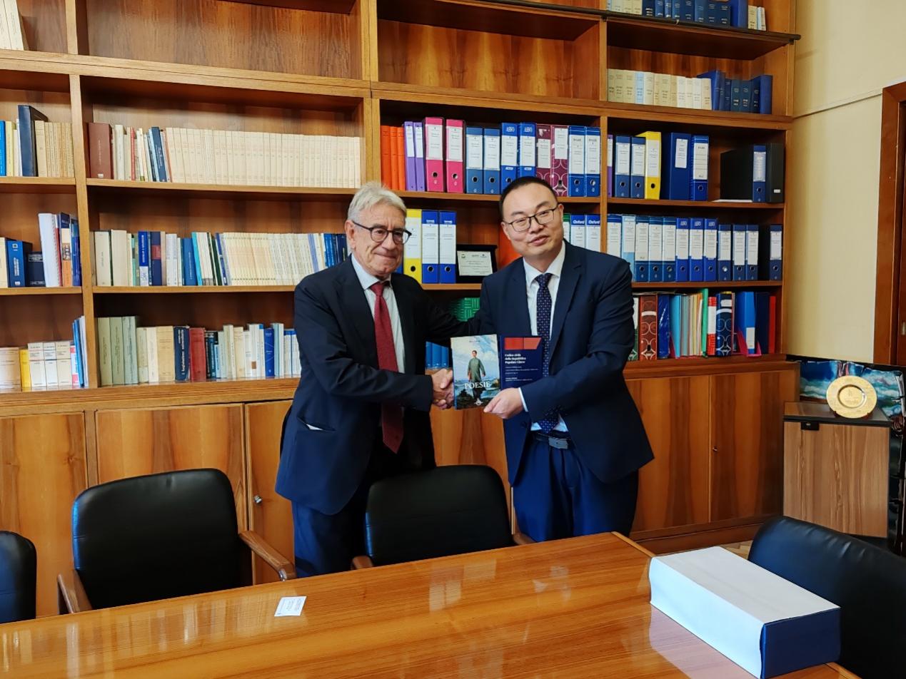 在罗马第一大学出访期间,代表团与该校法学院院长Olivero Diliberto教授、Domenico Dursi教授展开会晤。双方就师生互访、科研合作、学术交流以及推动双方校级层面的合作等方面达成良好的共识。代表团参访了中意法典化和法学人才培养研究中心(Osservatorio sulla codificazione e sulla formazione del giurista in Cina nel quadro del sistema giuridico romanistico),与中心主任Antonio Saccoccio教授、Sandro Schipani教授就罗马法、比较法和民商法领域内中意合作交流的发展历程和未来方向进行了深入的交流,并就推进联合开展课题研究、学术研讨和博士研究生培养等达成合作意向。