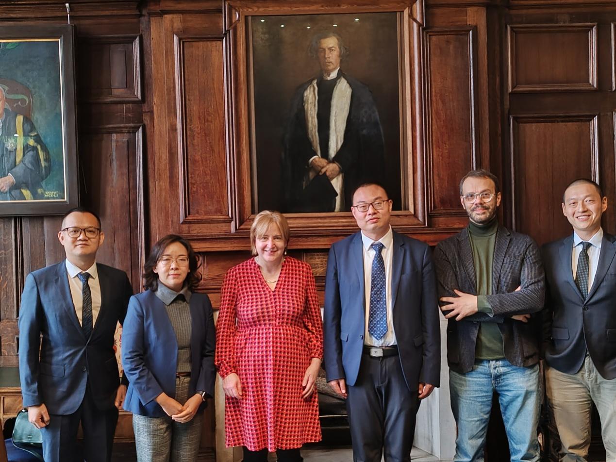 在格拉斯哥大学出访期间,代表团与该校法学院院长Claire McDiarmid教授、法学院国际化主任 Marco Goldoni教授、朱明哲教授进行了会晤。双方就创新人才培养、深化科研合作、加强学术交流与学科建设互鉴等议题进行了深入的交流,并就未来可能开展的联合科研攻关、国际会议合办、学生联合培养等核心议题形成了积极的共识,对双方合作备忘录签订程序和细节问题作出了进一步的商讨和确定。在洽谈中,双方都对持续推动多领域合作走深、走实,共同推动两院高质量发展表达了充分的肯定和信心。