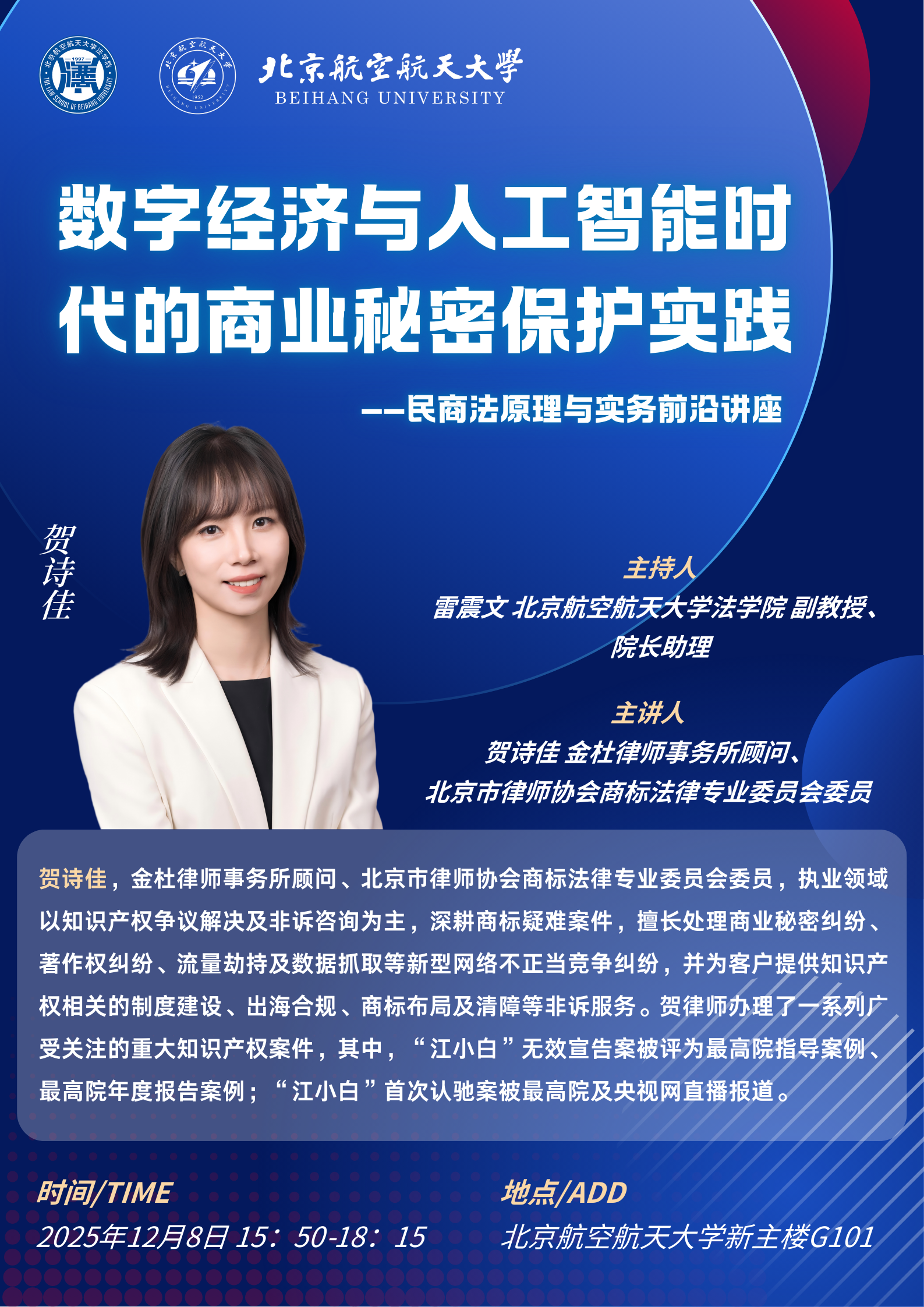 讲座预告 | 数字经济与人工智能时代的商业秘密保护实践
